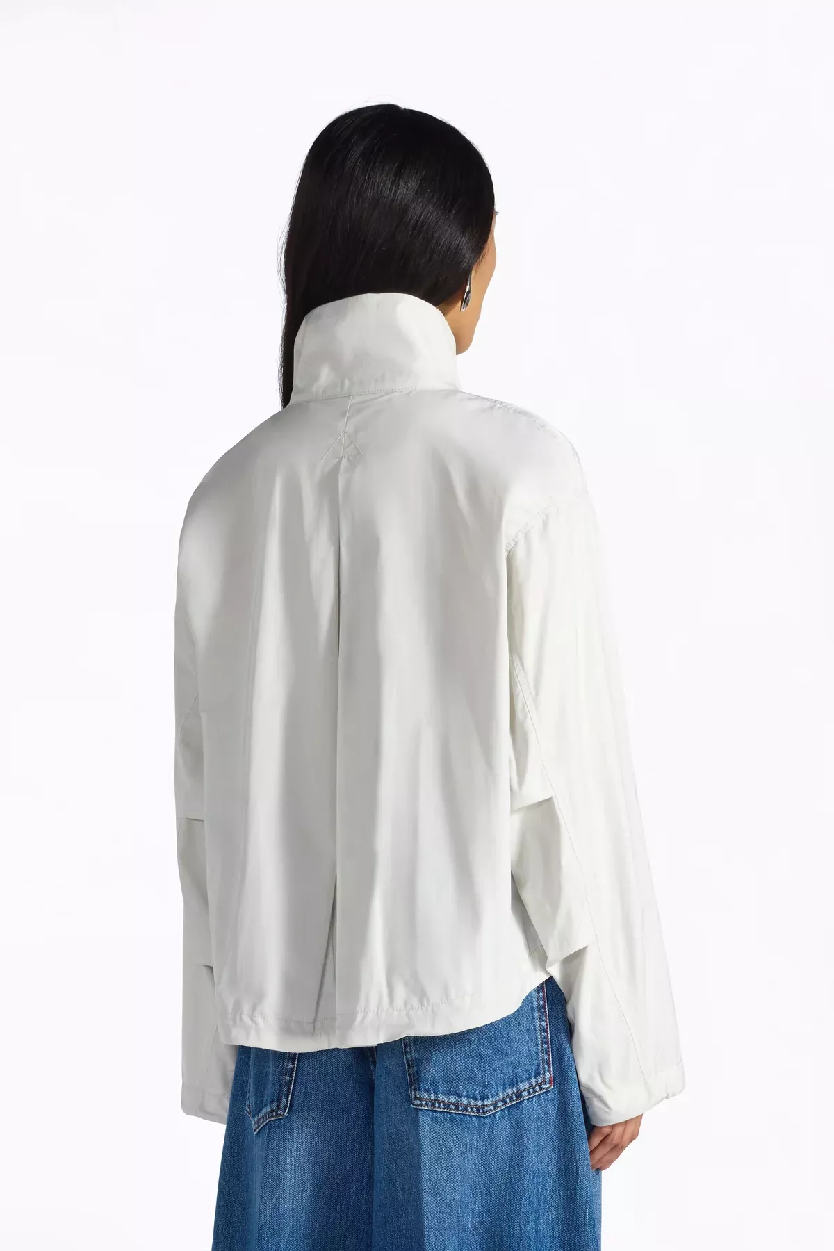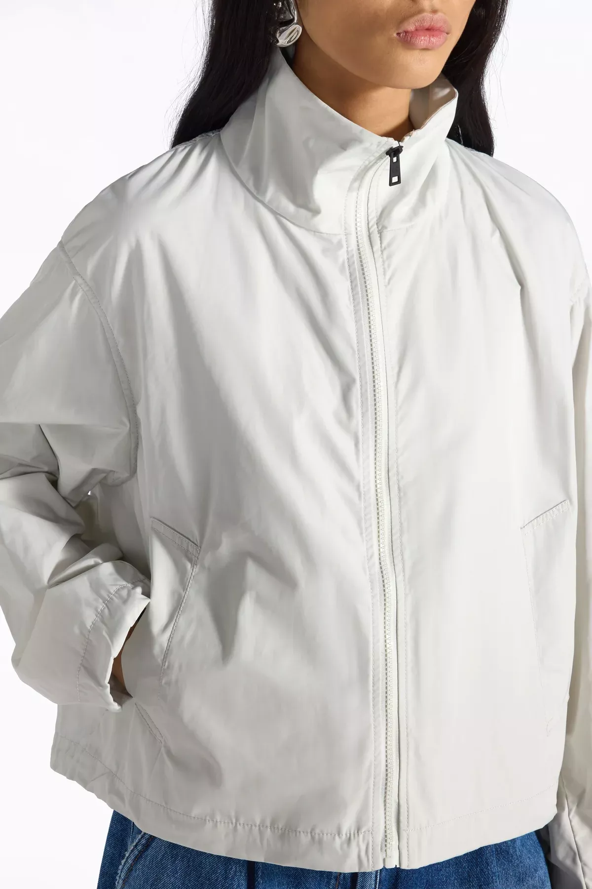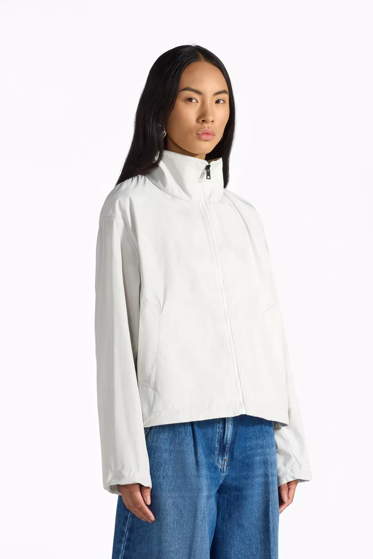 Chaqueta cort Windstopper con cuello alto, cierre de cremallera central a juego y deslizador oscuro, manga larga regular, bolsillos laterales verticales con solapas.