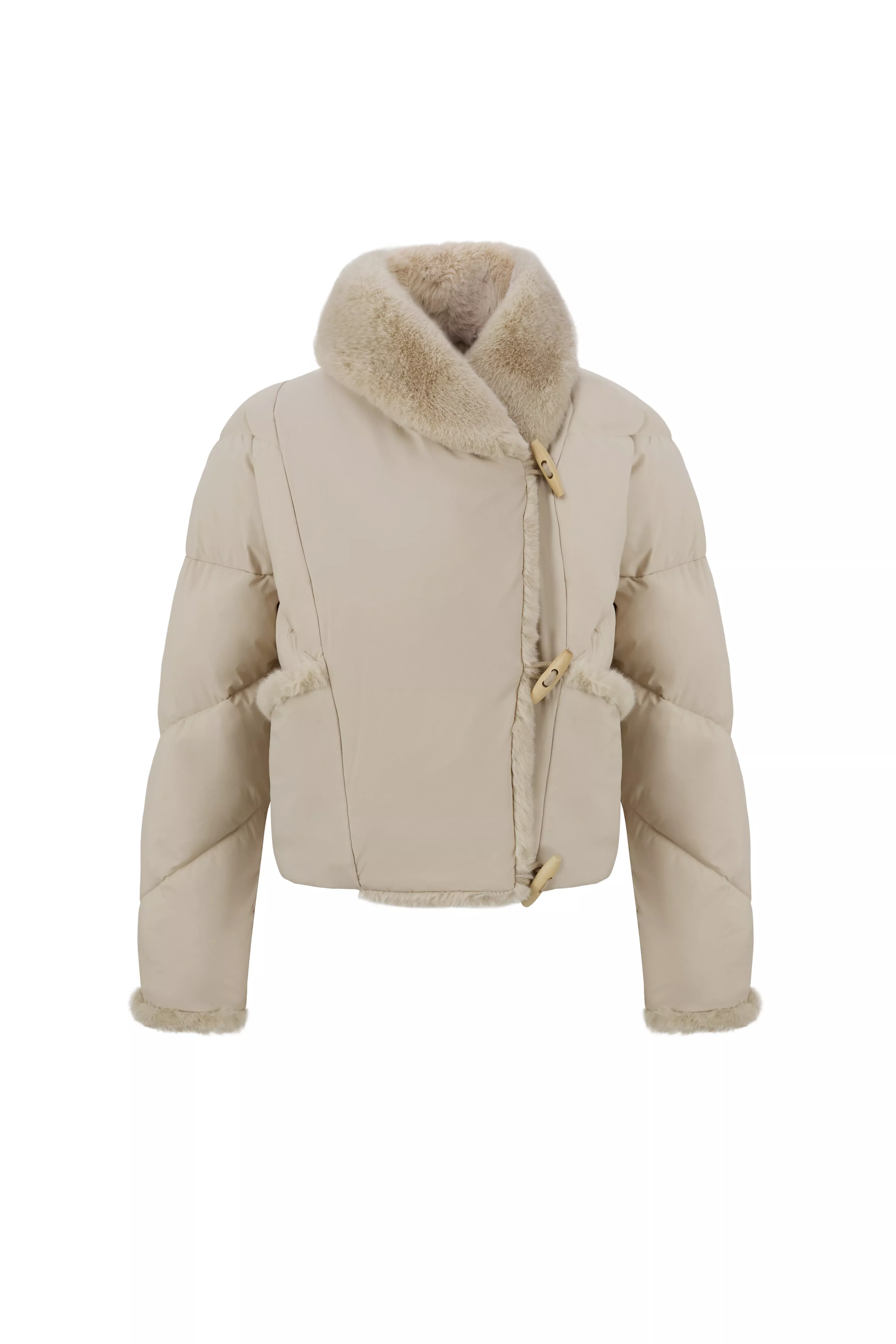 Chaqueta acolchada con cuello chal y pelo sintético con tacto de conejo.