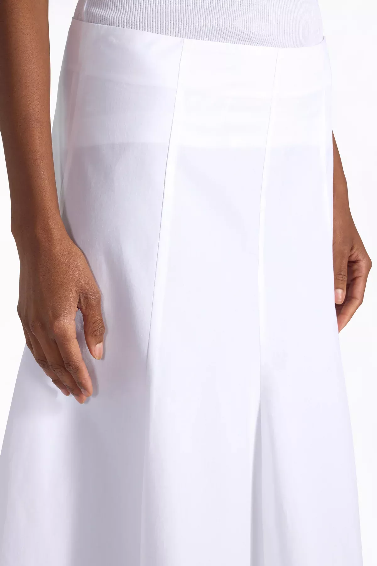Falda midi de popelina ligera. Pliego central con efecto drapeado. Cintura oculta con cierre de cremallea en la espalda. Corte recto que se ensancha en la parte de abajo.